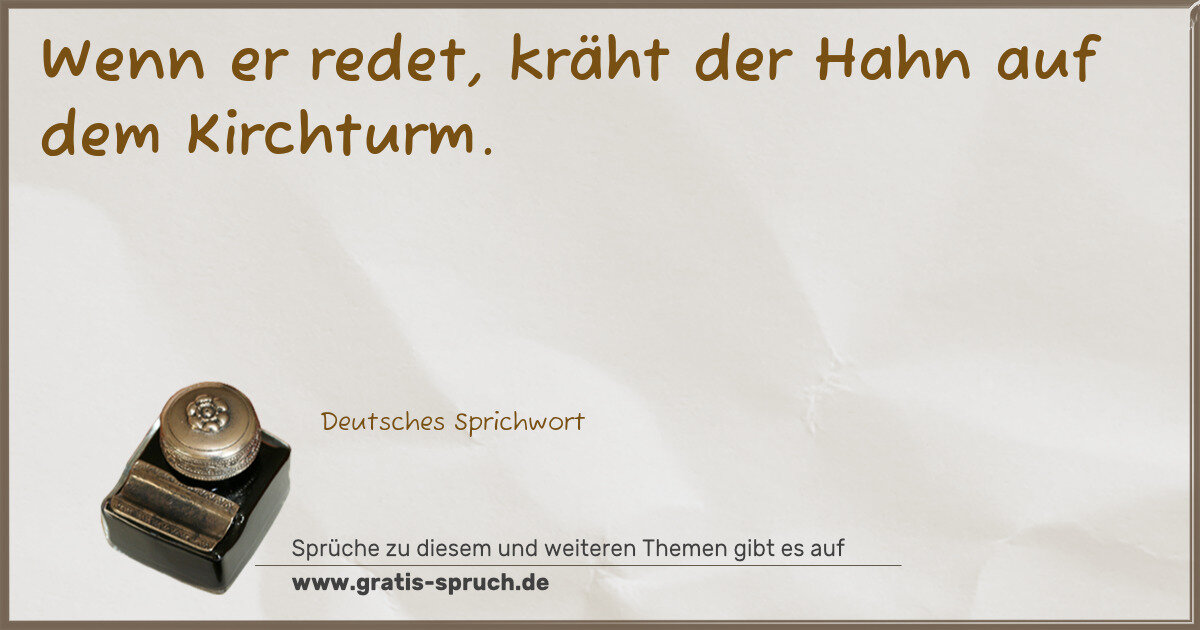 Wenn er redet, kräht der Hahn auf dem Kirchturm.