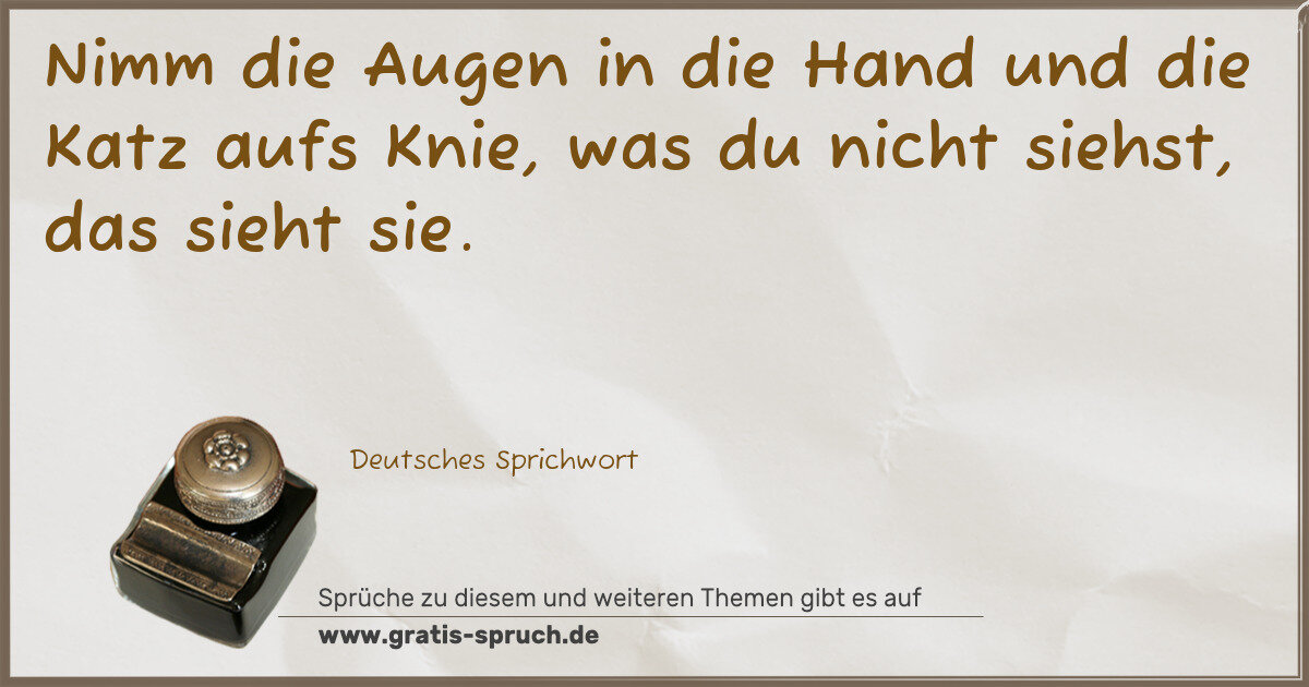 Nimm die Augen in die Hand und die Katz aufs Knie, was du nicht siehst, das sieht sie.