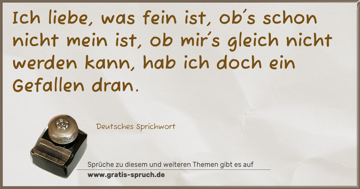 Ich liebe, was fein ist, ob's schon nicht mein ist, ob mir's gleich nicht werden kann, hab ich doch ein Gefallen dran.