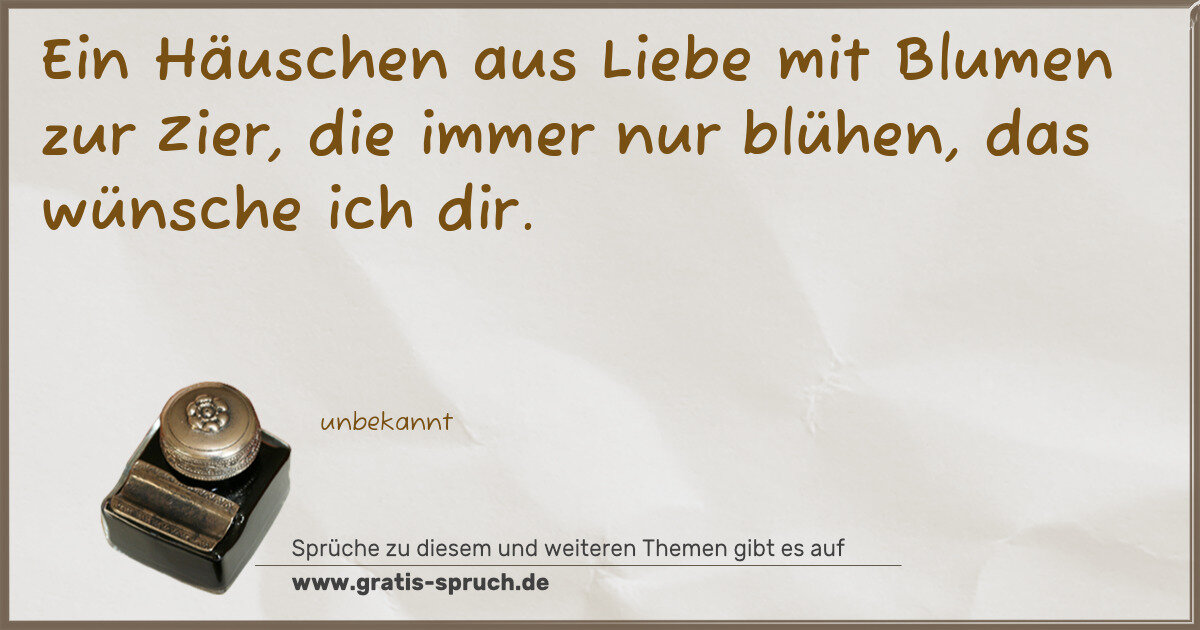 Ein Häuschen aus Liebe mit Blumen zur Zier, die immer nur blühen, das wünsche ich dir.