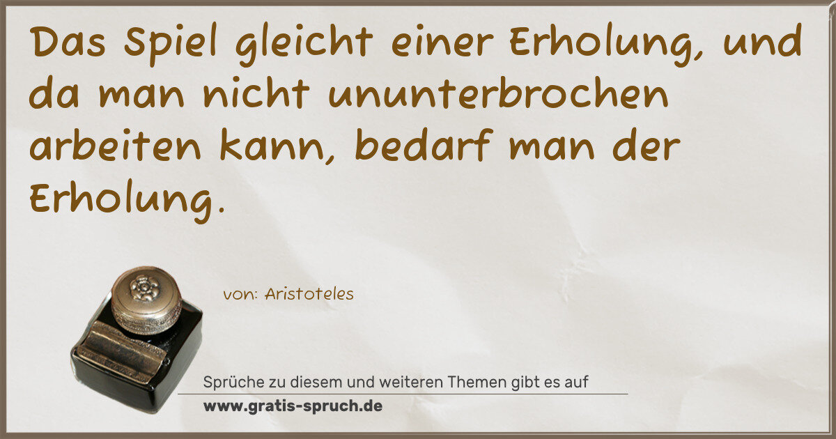 Das Spiel gleicht einer Erholung, und da man nicht ununterbrochen arbeiten kann, bedarf man der Erholung.