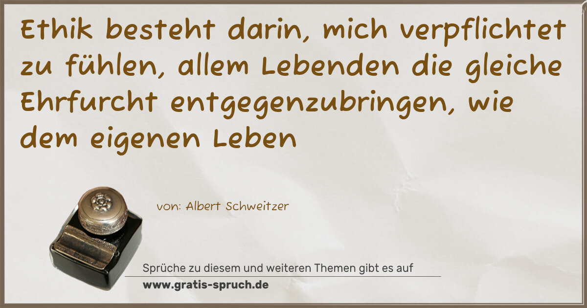 Ethik besteht darin, mich verpflichtet zu fühlen, allem Lebenden die gleiche Ehrfurcht entgegenzubringen, wie dem eigenen Leben
