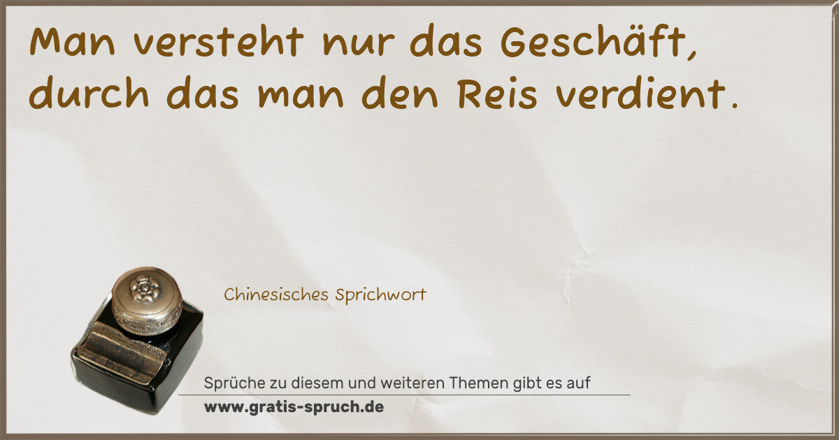 Man versteht nur das Geschäft, durch das man den Reis verdient.