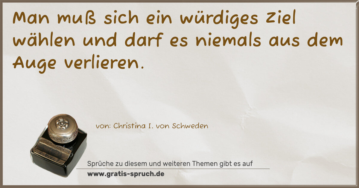 Man muß sich ein würdiges Ziel wählen und darf es niemals aus dem Auge verlieren.