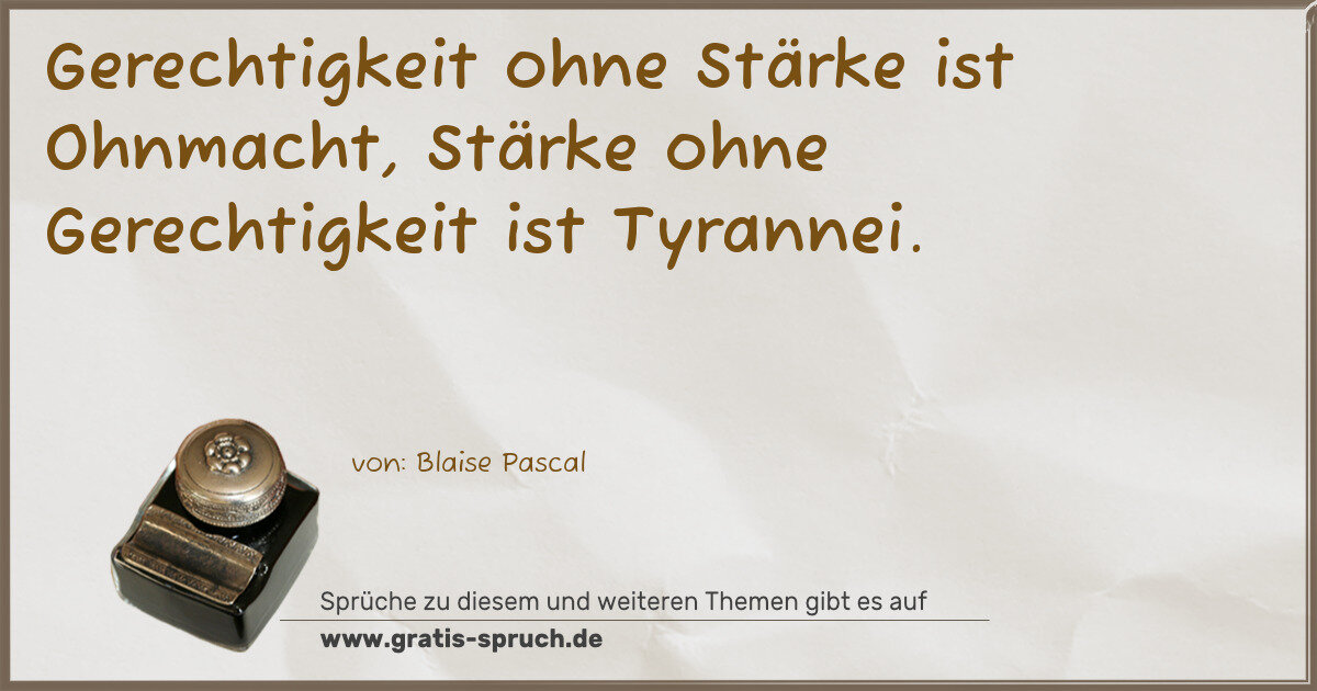 Gerechtigkeit ohne Stärke ist Ohnmacht, Stärke ohne Gerechtigkeit ist Tyrannei.
