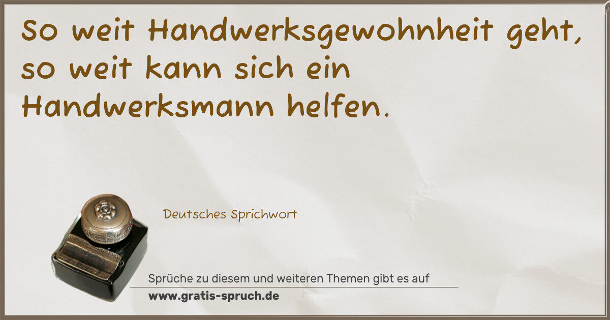 So weit Handwerksgewohnheit geht, so weit kann sich ein Handwerksmann helfen.