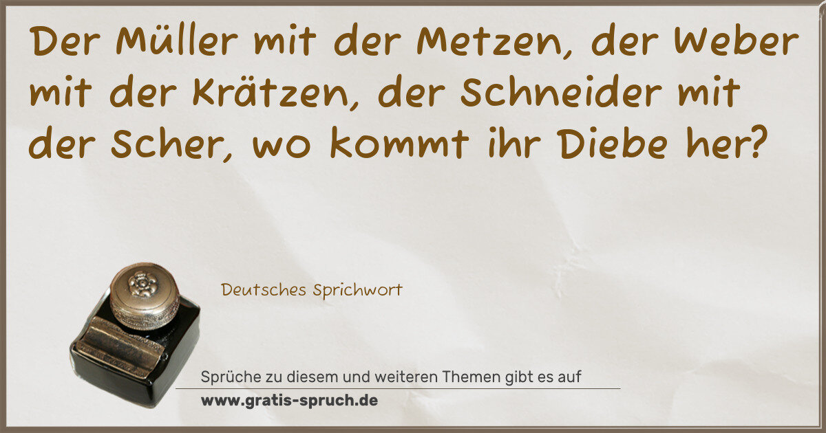 Der Müller mit der Metzen, der Weber mit der Krätzen, der Schneider mit der Scher, wo kommt ihr Diebe her?