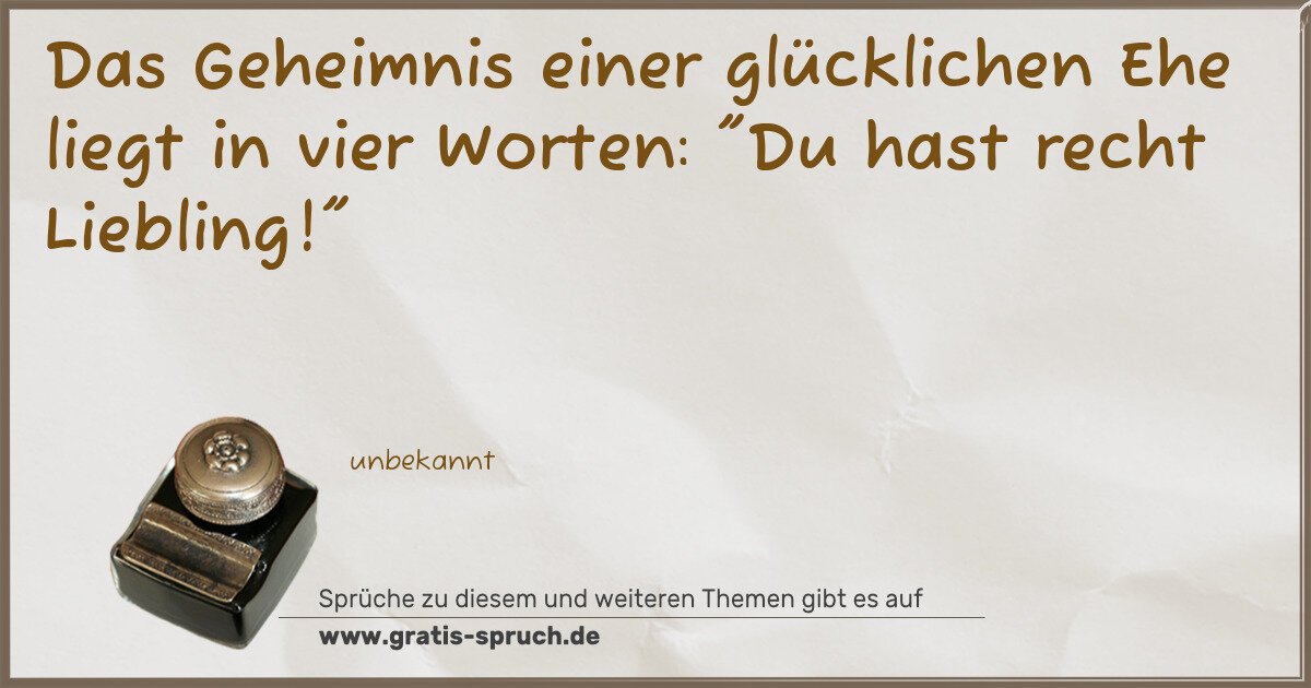 Das Geheimnis einer glücklichen Ehe liegt in vier Worten: "Du hast recht Liebling!"