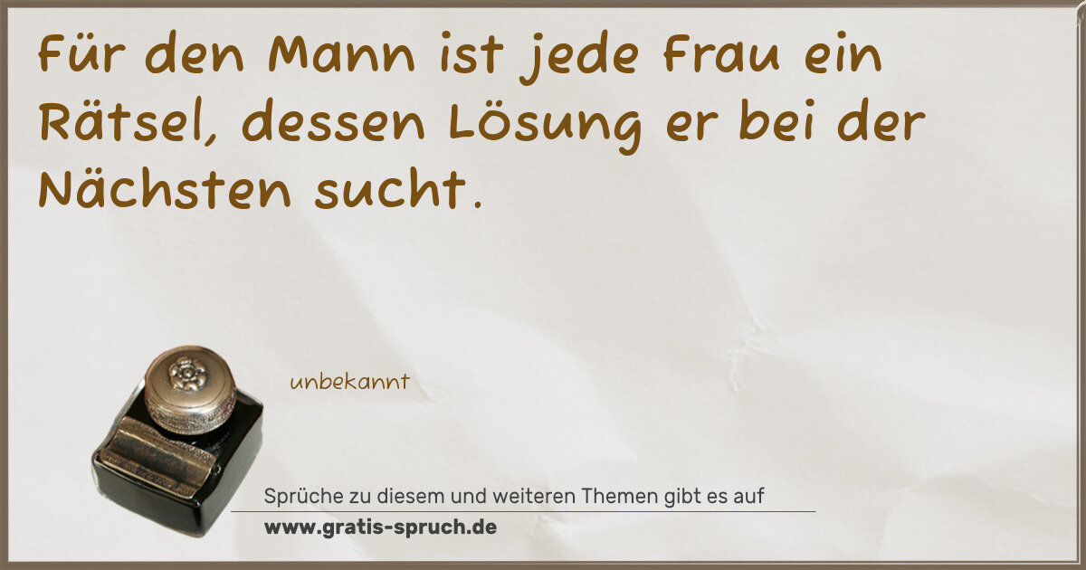Für den Mann ist jede Frau ein Rätsel, dessen Lösung er bei der Nächsten sucht.