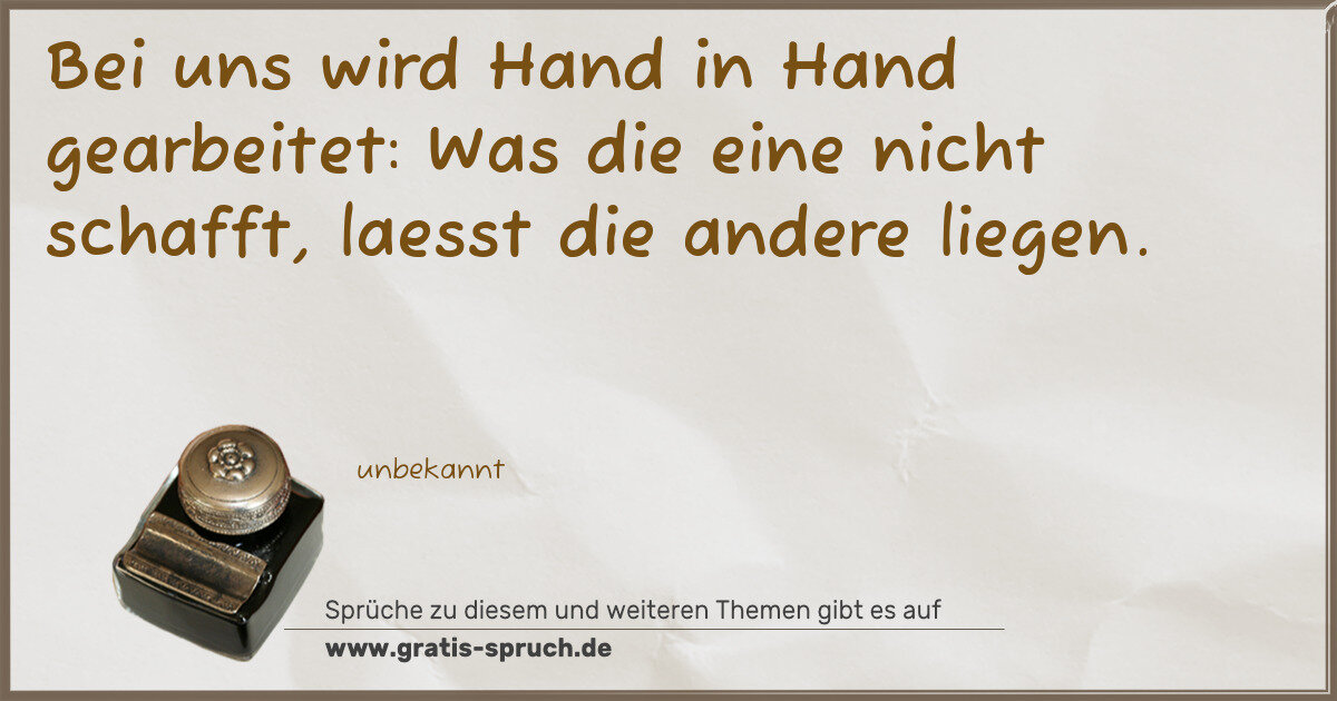 Bei uns wird Hand in Hand gearbeitet: Was die eine nicht schafft, laesst die andere liegen.