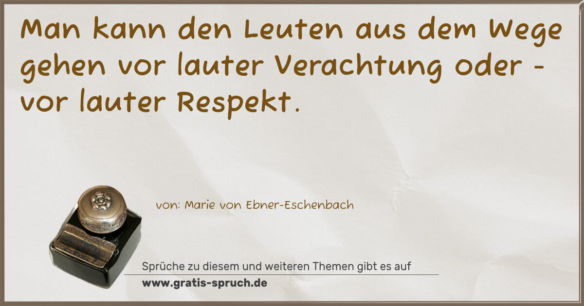 Man kann den Leuten aus dem Wege gehen vor lauter Verachtung oder - vor lauter Respekt.