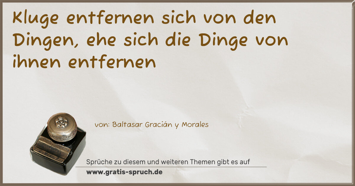 Kluge entfernen sich von den Dingen, ehe sich die Dinge von ihnen entfernen
