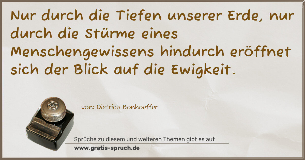 Nur durch die Tiefen unserer Erde, nur durch die Stürme eines Menschengewissens hindurch eröffnet sich der Blick auf die Ewigkeit.