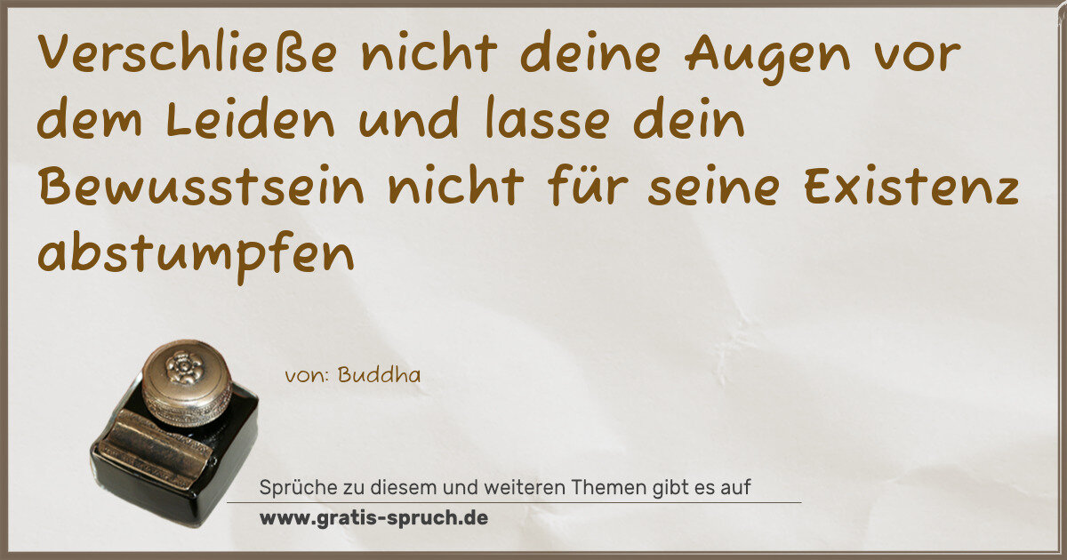 Verschließe nicht deine Augen vor dem Leiden und lasse dein Bewusstsein nicht für seine Existenz abstumpfen
