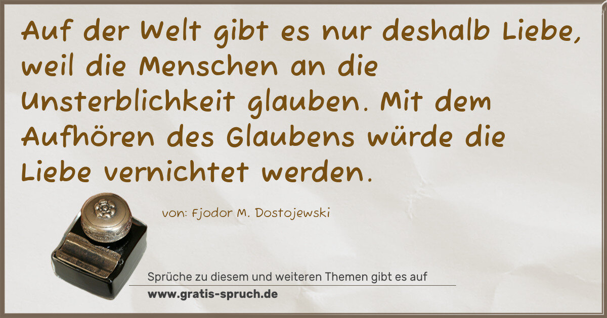 »Auf der Welt gibt es nur deshalb Liebe, weil die Menschen an die Unsterblichkeit glauben. Mit dem Aufhören des Glaubens würde die Liebe vernichtet werden.