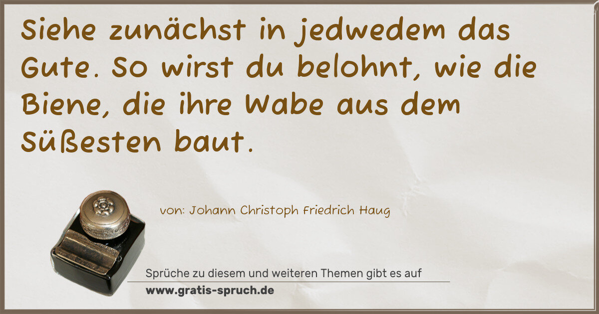 Siehe zunächst in jedwedem das Gute. So wirst du belohnt, wie die Biene, die ihre Wabe aus dem Süßesten baut.