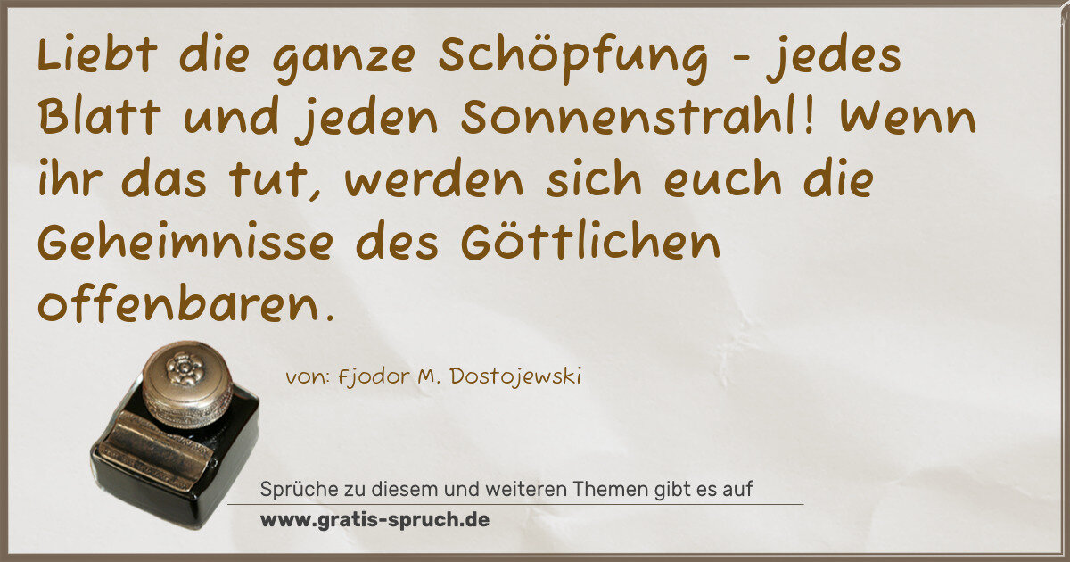 »Liebt die ganze Schöpfung - jedes Blatt und jeden Sonnenstrahl! Wenn ihr das tut, werden sich euch die Geheimnisse des Göttlichen offenbaren.
