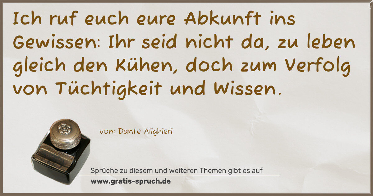 »Ich ruf euch eure Abkunft ins Gewissen: Ihr seid nicht da, zu leben gleich den Kühen, doch zum Verfolg von Tüchtigkeit und Wissen.