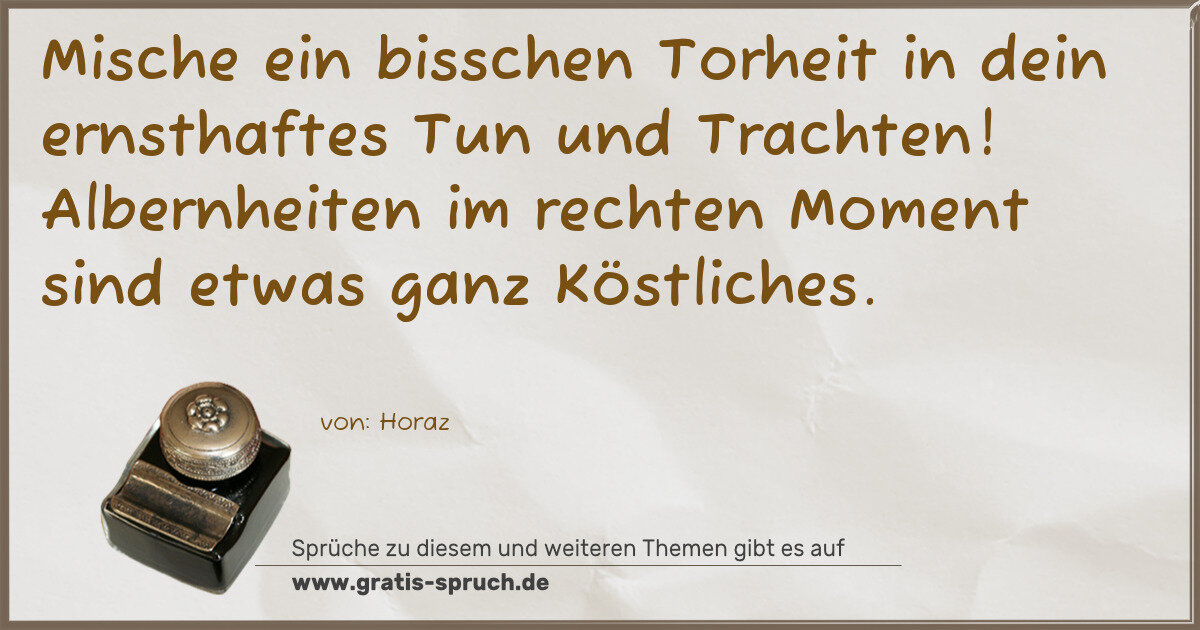 Mische ein bisschen Torheit in dein ernsthaftes Tun und Trachten! Albernheiten im rechten Moment sind etwas ganz Köstliches.