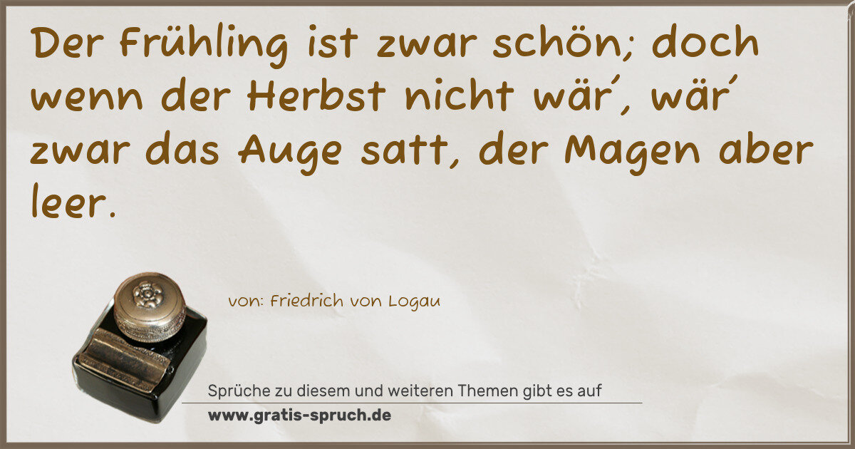 Der Frühling ist zwar schön; doch wenn der Herbst nicht wär', wär' zwar das Auge satt, der Magen aber leer.