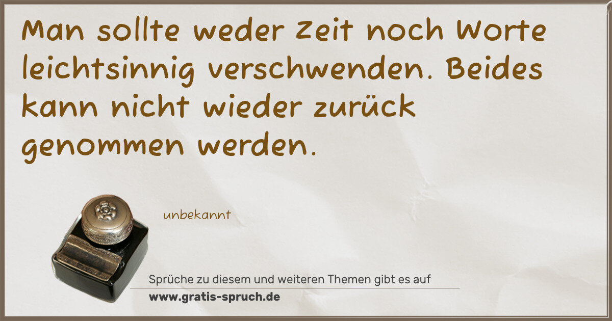 Man sollte weder Zeit noch Worte leichtsinnig verschwenden. Beides kann nicht wieder zurück genommen werden.