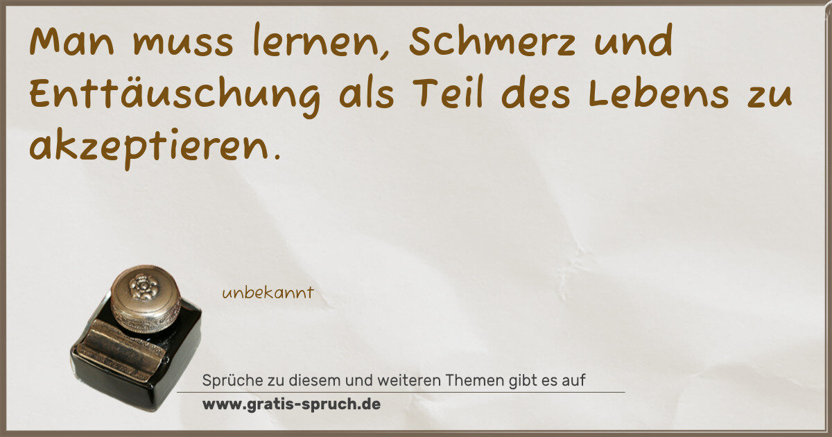 Man muss lernen, Schmerz und Enttäuschung als Teil des Lebens zu akzeptieren.