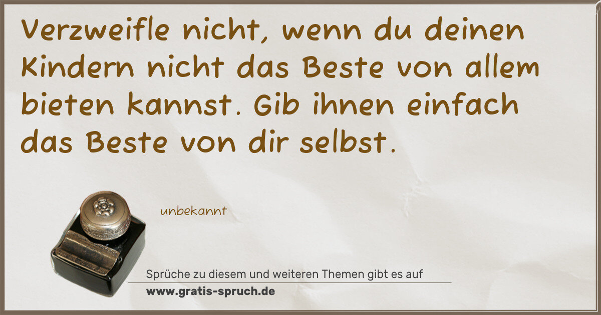 Verzweifle nicht, wenn du deinen Kindern nicht das Beste von allem bieten kannst. Gib ihnen einfach das Beste von dir selbst.