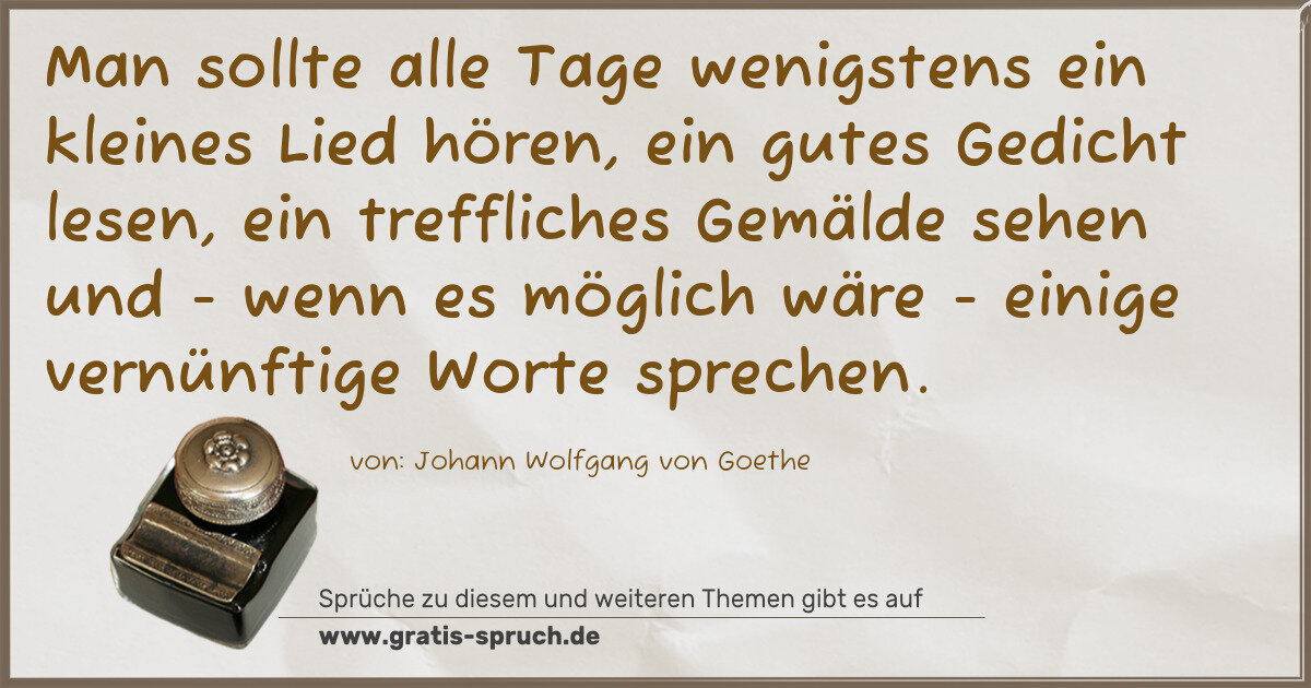 ein gutes Gedicht lesen, ein treffliches Gemälde sehen und - wenn es möglich wäre - einige vernünftige Worte sprechen.