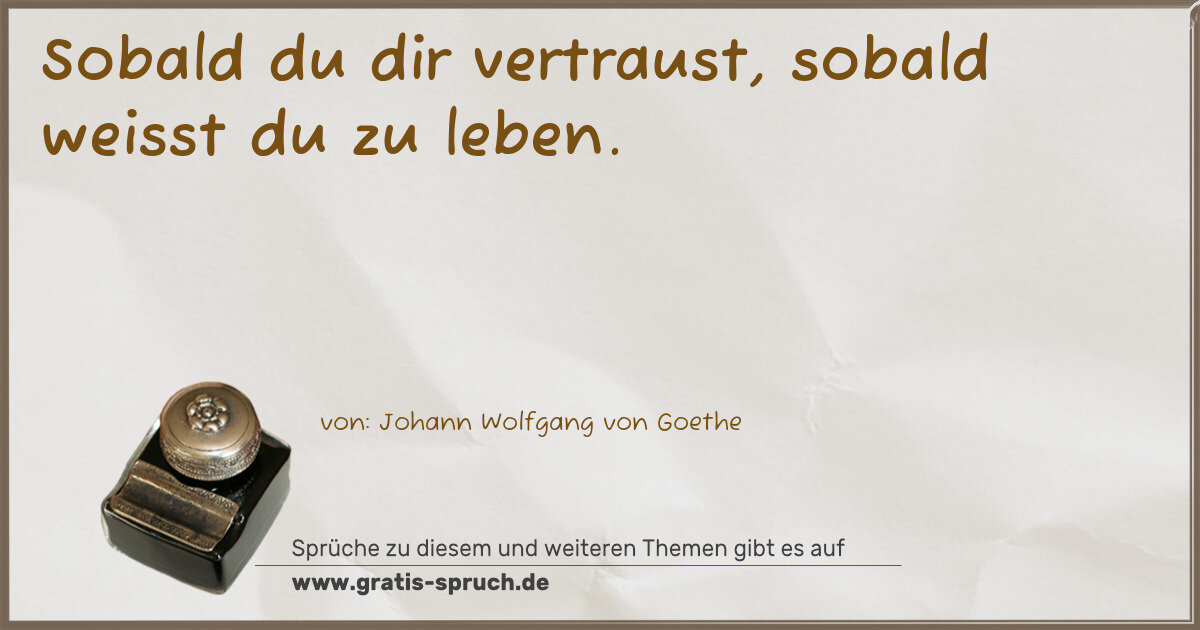 Sobald du dir vertraust, sobald weisst du zu leben.