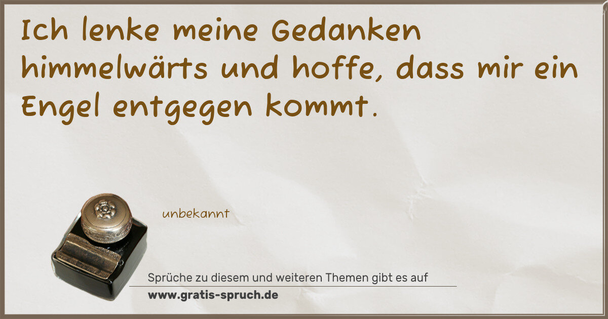 Ich lenke meine Gedanken himmelwärts und hoffe, dass mir ein Engel entgegen kommt.