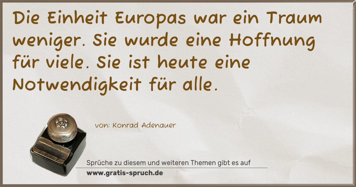 Die Einheit Europas war ein Traum weniger. Sie wurde eine Hoffnung für viele. Sie ist heute eine Notwendigkeit für alle.