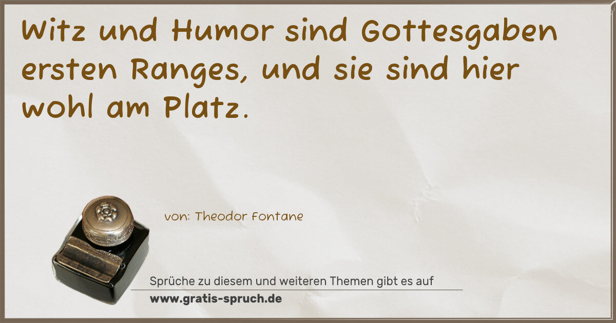 Witz und Humor sind Gottesgaben ersten Ranges, und sie sind hier wohl am Platz.