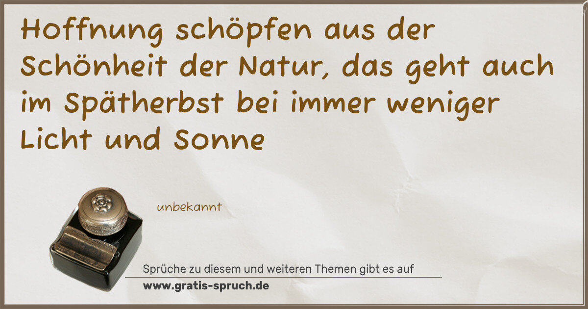 Hoffnung schöpfen aus der Schönheit der Natur, das geht auch im Spätherbst bei immer weniger Licht und Sonne
