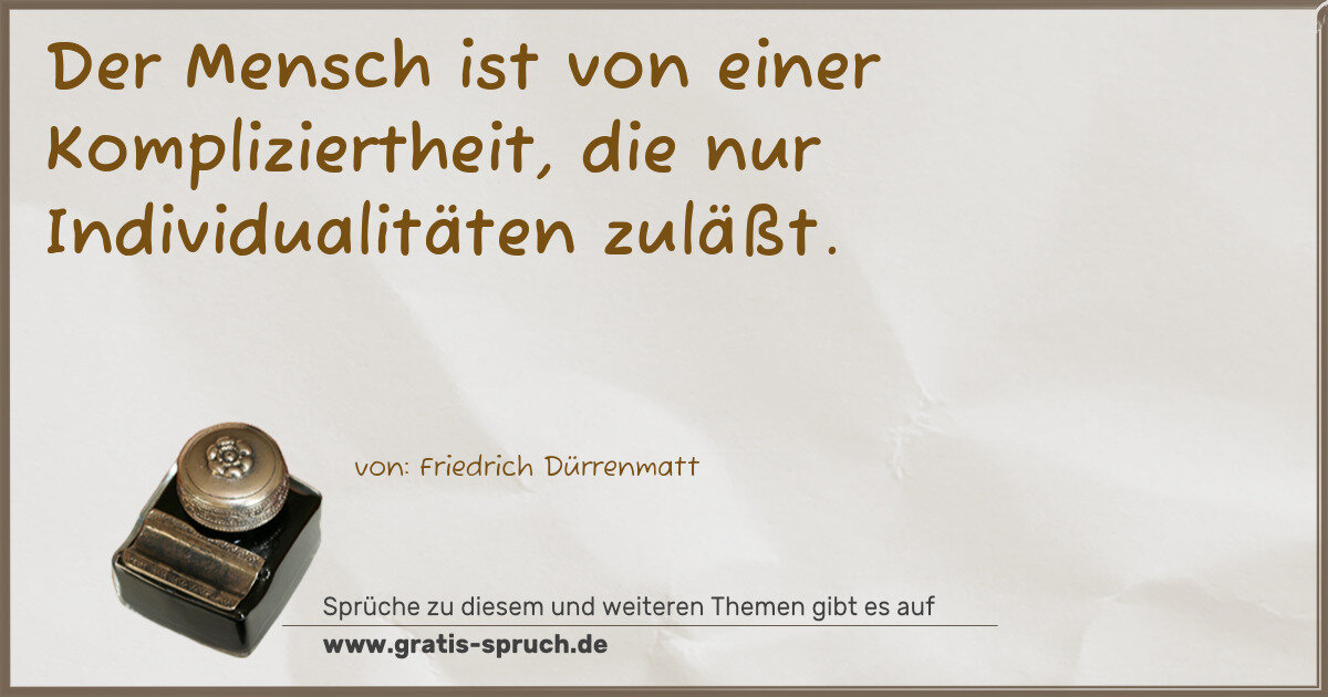 Der Mensch ist von einer Kompliziertheit, die nur Individualitäten zuläßt.