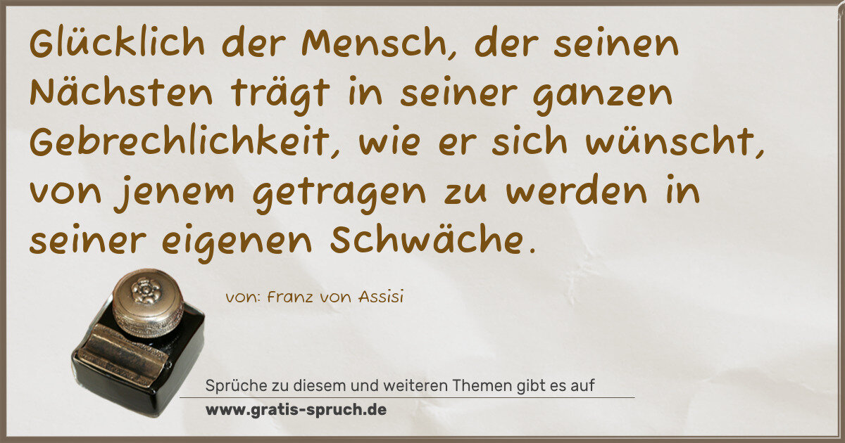»Glücklich der Mensch, der seinen Nächsten trägt in seiner ganzen Gebrechlichkeit, wie er sich wünscht, von jenem getragen zu werden in seiner eigenen Schwäche.