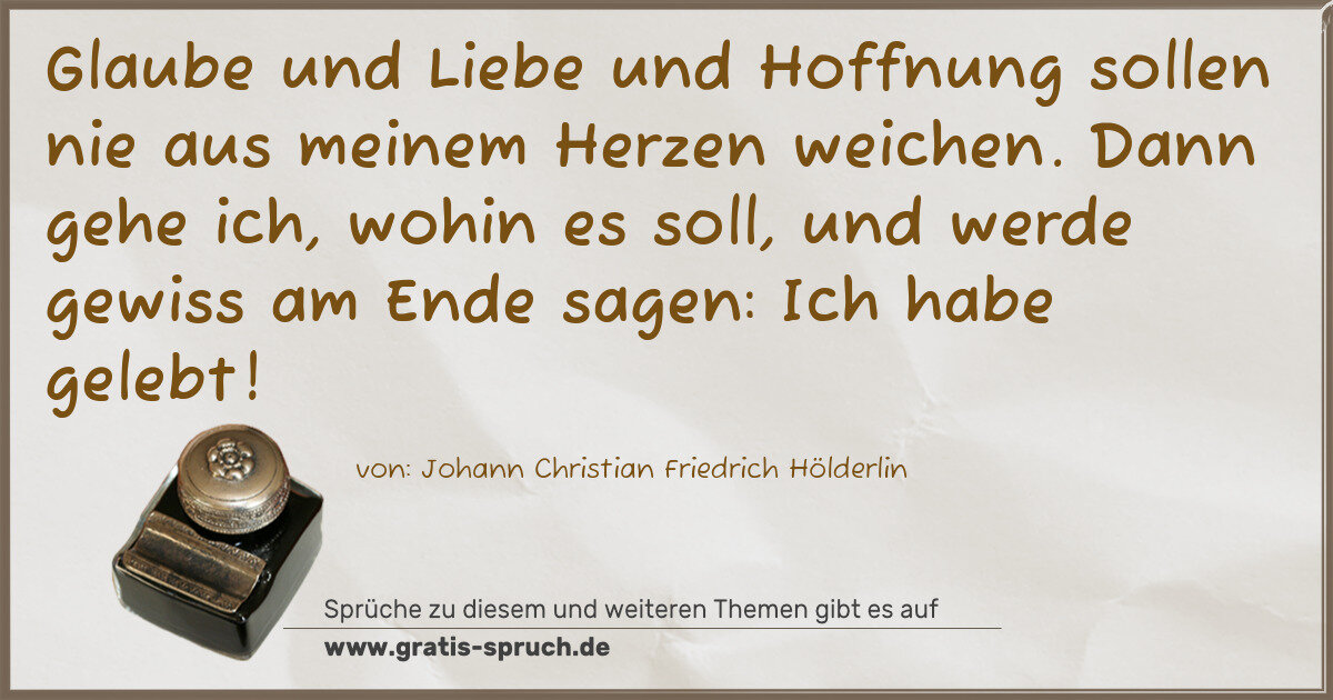 »Glaube und Liebe und Hoffnung sollen nie aus meinem Herzen weichen. Dann gehe ich, wohin es soll, und werde gewiss am Ende sagen: Ich habe gelebt!