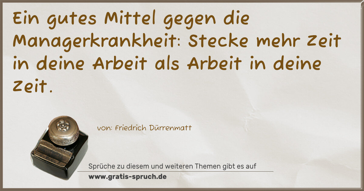 Ein gutes Mittel gegen die Managerkrankheit: Stecke mehr Zeit in deine Arbeit als Arbeit in deine Zeit.