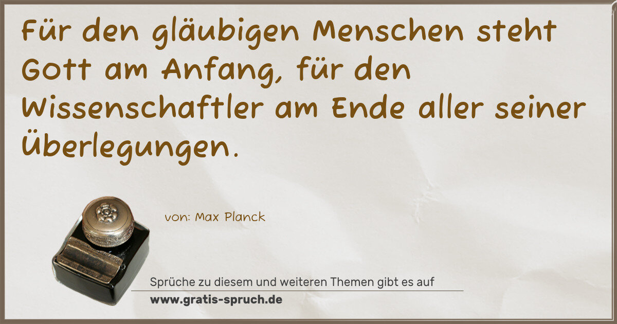 Für den gläubigen Menschen steht Gott am Anfang, für den Wissenschaftler am Ende aller seiner Überlegungen.