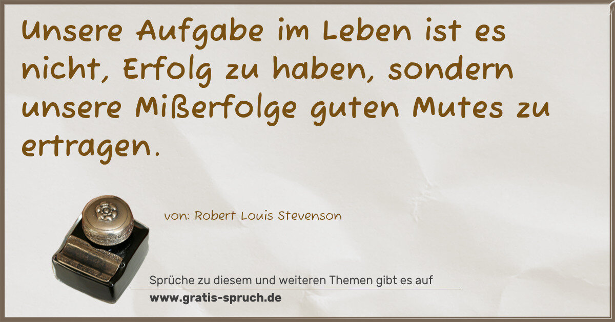 Unsere Aufgabe im Leben ist es nicht, Erfolg zu haben, sondern unsere Mißerfolge guten Mutes zu ertragen.