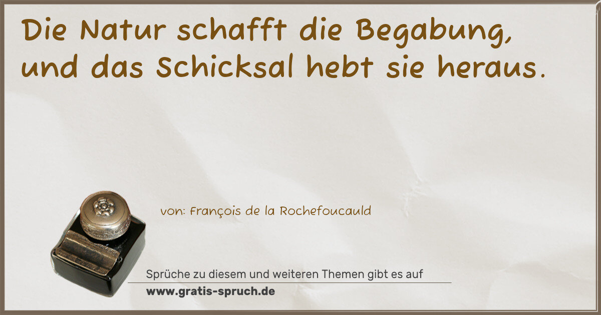 Die Natur schafft die Begabung, und das Schicksal hebt sie heraus.