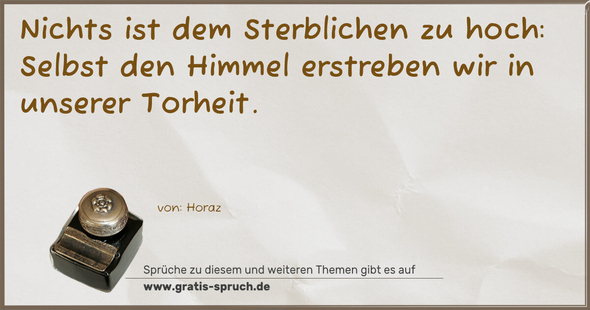 Nichts ist dem Sterblichen zu hoch: Selbst den Himmel erstreben wir in unserer Torheit.