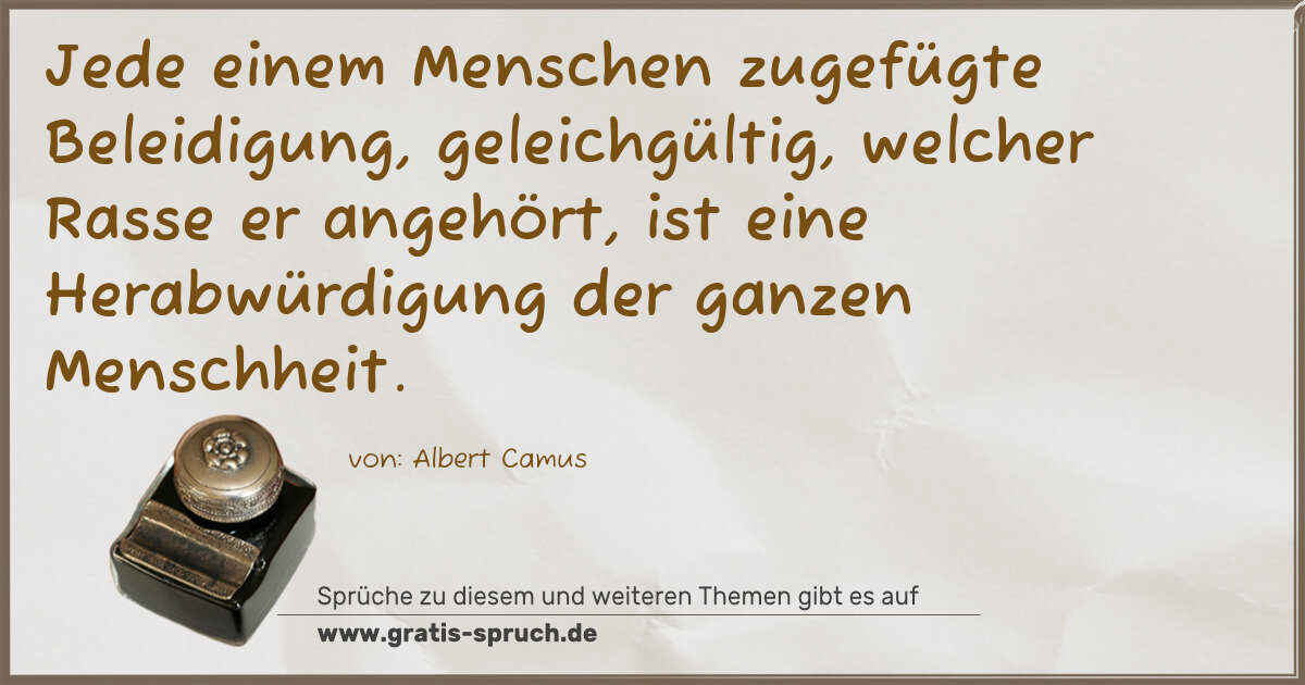 Jede einem Menschen zugefügte Beleidigung, geleichgültig, welcher Rasse er angehört, ist eine Herabwürdigung der ganzen Menschheit.