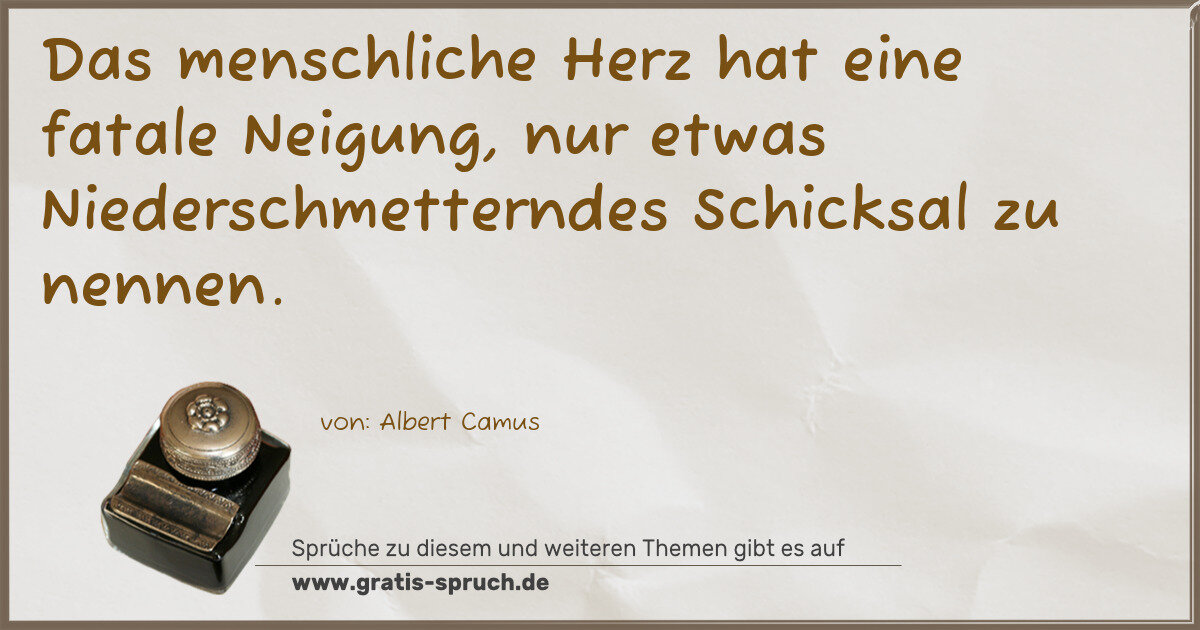 Das menschliche Herz hat eine fatale Neigung, nur etwas Niederschmetterndes Schicksal zu nennen.