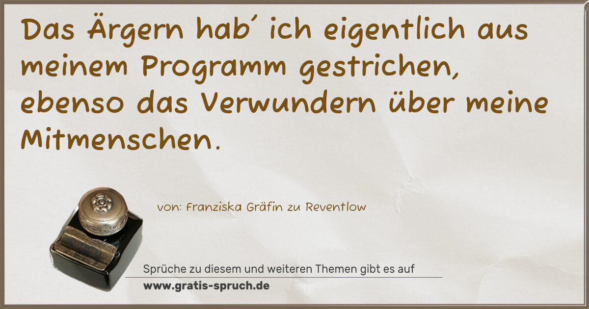 Das Ärgern hab' ich eigentlich aus meinem Programm gestrichen, ebenso das Verwundern über meine Mitmenschen.
