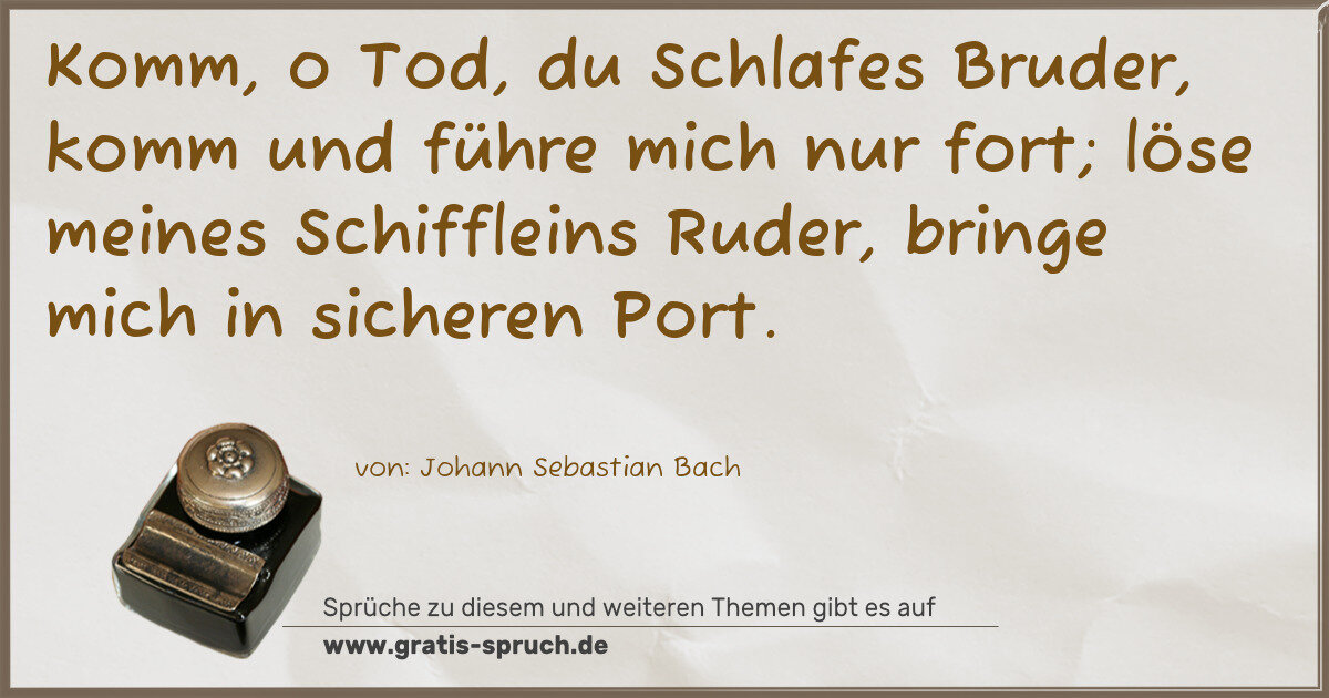 Komm, o Tod, du Schlafes Bruder, komm und führe mich nur fort; löse meines Schiffleins Ruder, bringe mich in sicheren Port.
