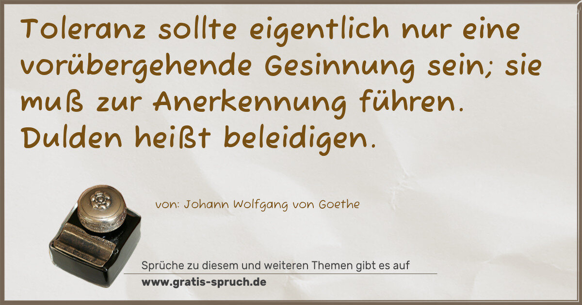 »Toleranz sollte eigentlich nur eine vorübergehende Gesinnung sein; sie muß zur Anerkennung führen. Dulden heißt beleidigen.