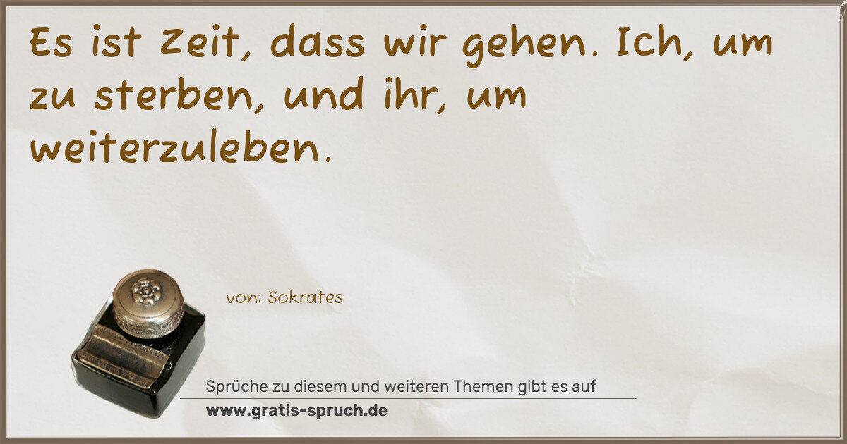 Es ist Zeit, dass wir gehen. Ich, um zu sterben, und ihr, um weiterzuleben.