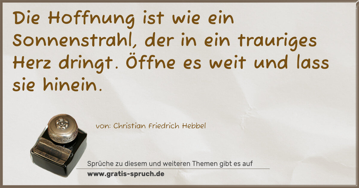 Die Hoffnung ist wie ein Sonnenstrahl, der in ein trauriges Herz dringt. Öffne es weit und lass sie hinein.