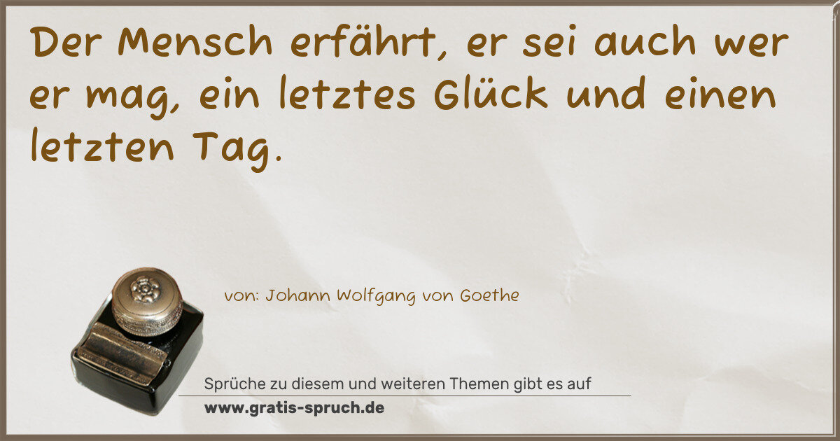 Der Mensch erfährt, er sei auch wer er mag, ein letztes Glück und einen letzten Tag.