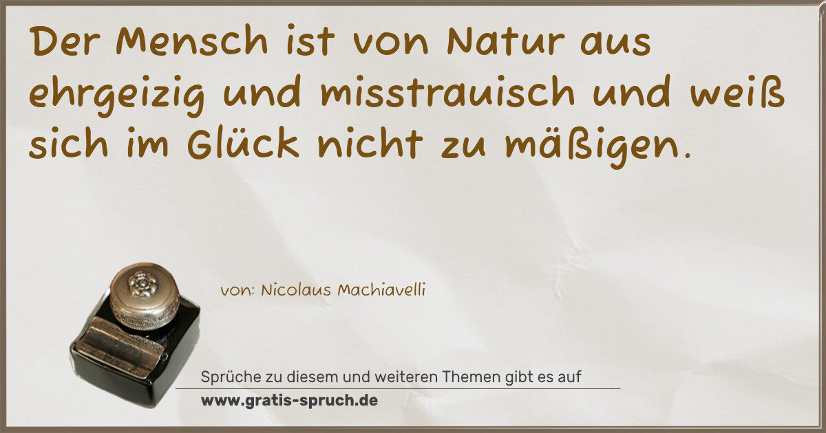 Der Mensch ist von Natur aus ehrgeizig und misstrauisch und weiß sich im Glück nicht zu mäßigen.
